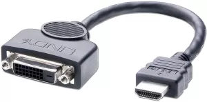 Câble adaptateur Lindy HDMI vers DVI-I M/F 20cm (Noir)